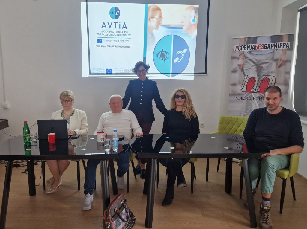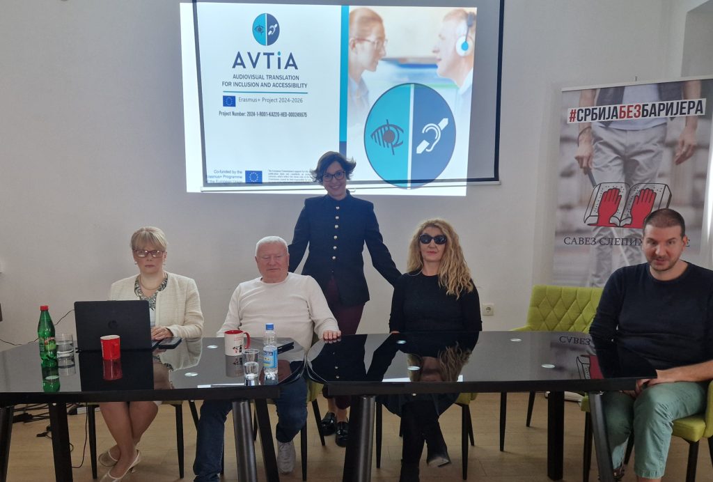 Savez slepih Srbije je 6.8.2025. godine postao pridruženi partner Erasmus+ projekta AVTiA – Audiovisual Translation for Inclusion and Accessibility (Project Number: 2024-1-RO01-KA220-HED-000249675), dok je 21.10.2025. godine održan sastanak sa rukovodiocem projekta ispred Univerziteta u Beogradu sa ciljem upoznavanja članova sa ciljevima i rezultatima projekta.